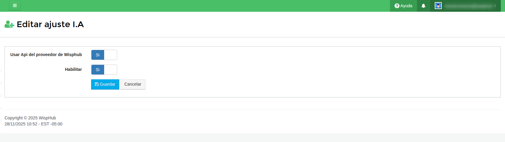 Configurar WispHub como proveedor de Inteligencia Artificial