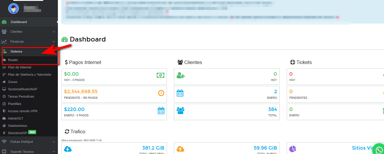 Ya realizada la configuracion previa nos dirigimos a SISTEMA > ROUTER