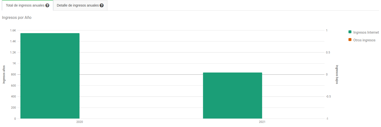 Encontramos una sección donde podemos obtener dos gráficas de los ingresos que hemos tenido por año: