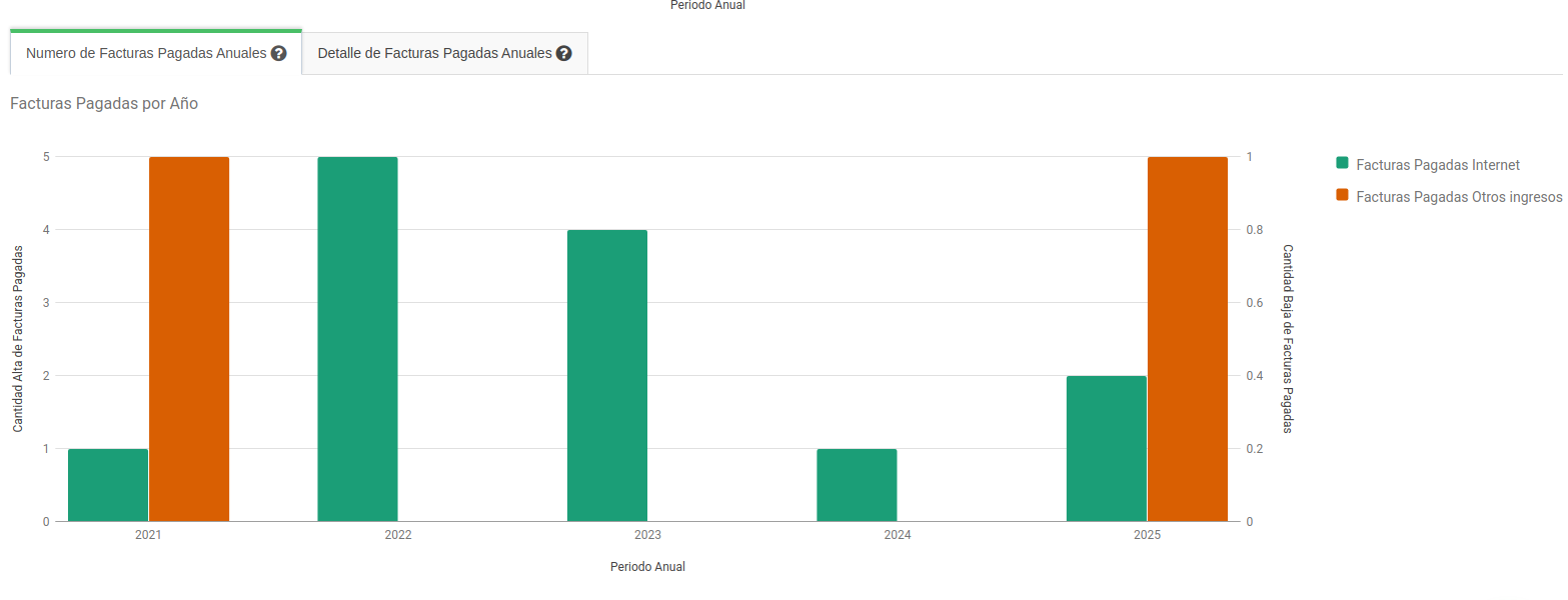 - Detalle de Facturas Pagadas Anuales: Muestra cada tipo de facturas pagadas por separado por periodo anual