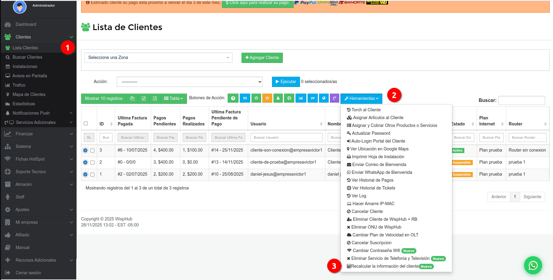 Ahora puedes actualizar manualmente la información contable de cualquier cliente desde Clientes → Lista de clientes. En la sección de Herramientas, encontrarás la opción “Recalcular la información del cliente”.