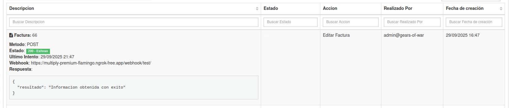 Webhooks para acciones de Factura