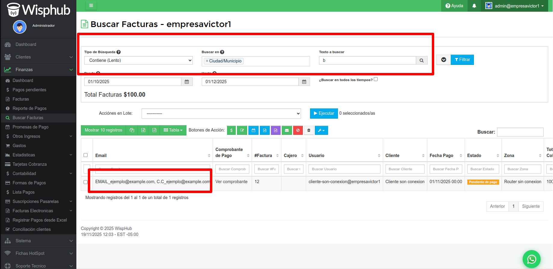 Se añadió un nuevo dato en la columna de Email. Ahora, además del correo principal, también se muestra la información de email c.c. en las listas de facturas y clientes, así como en las búsquedas de facturas y clientes en todas las versiones. -