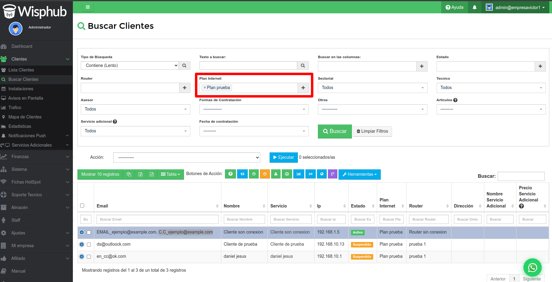 En Buscar Clientes se incorporó un filtro por Plan de Internet.